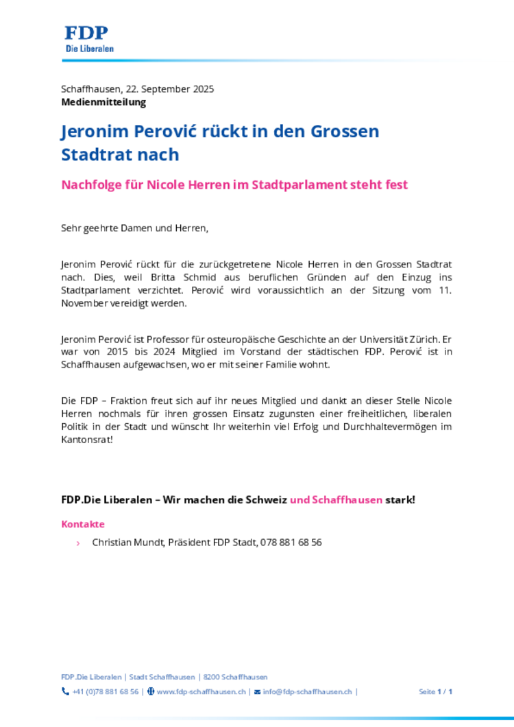 Nachfolge für Nicole Herren im Stadtparlament steht fest